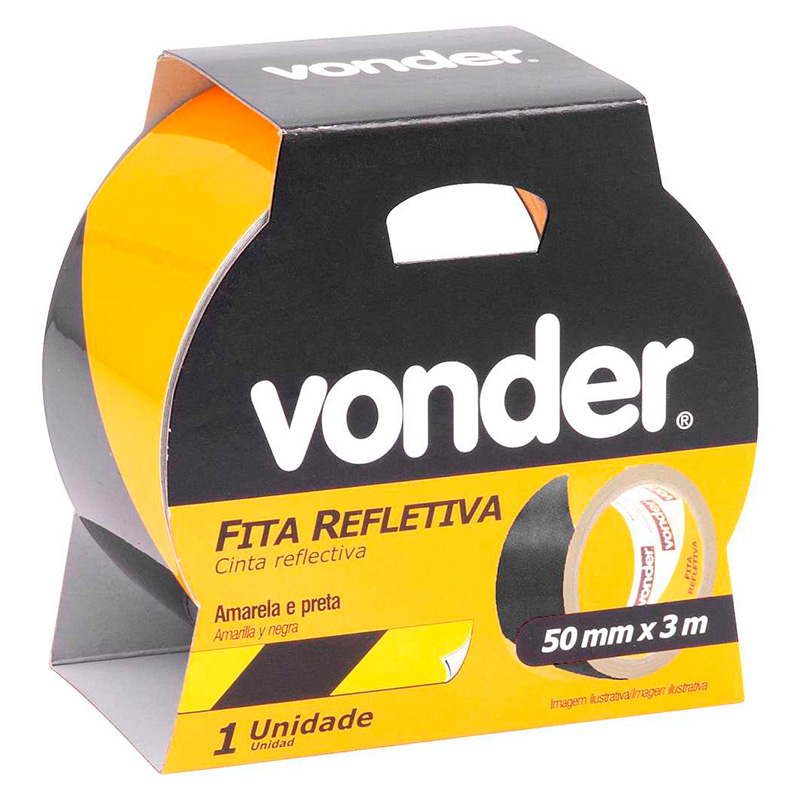 FITA ADESIVA REFLETIVA AMARELA E PRETA 50 MM X 03 METROS